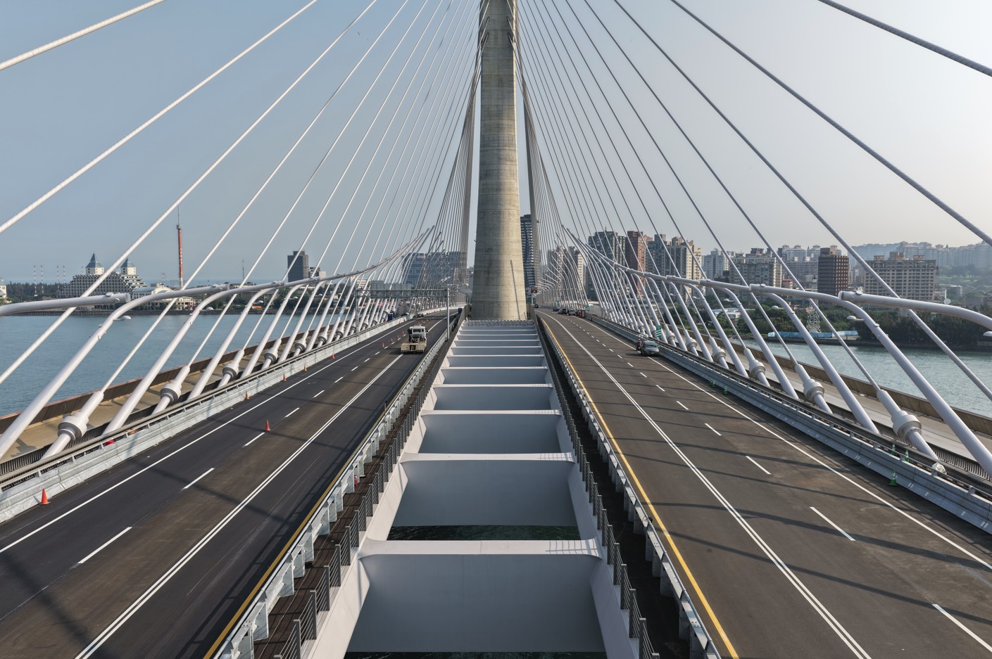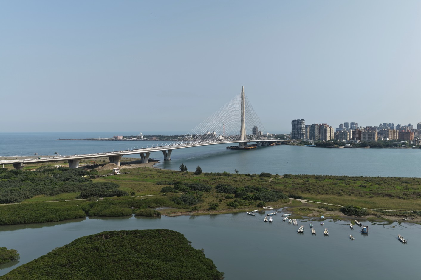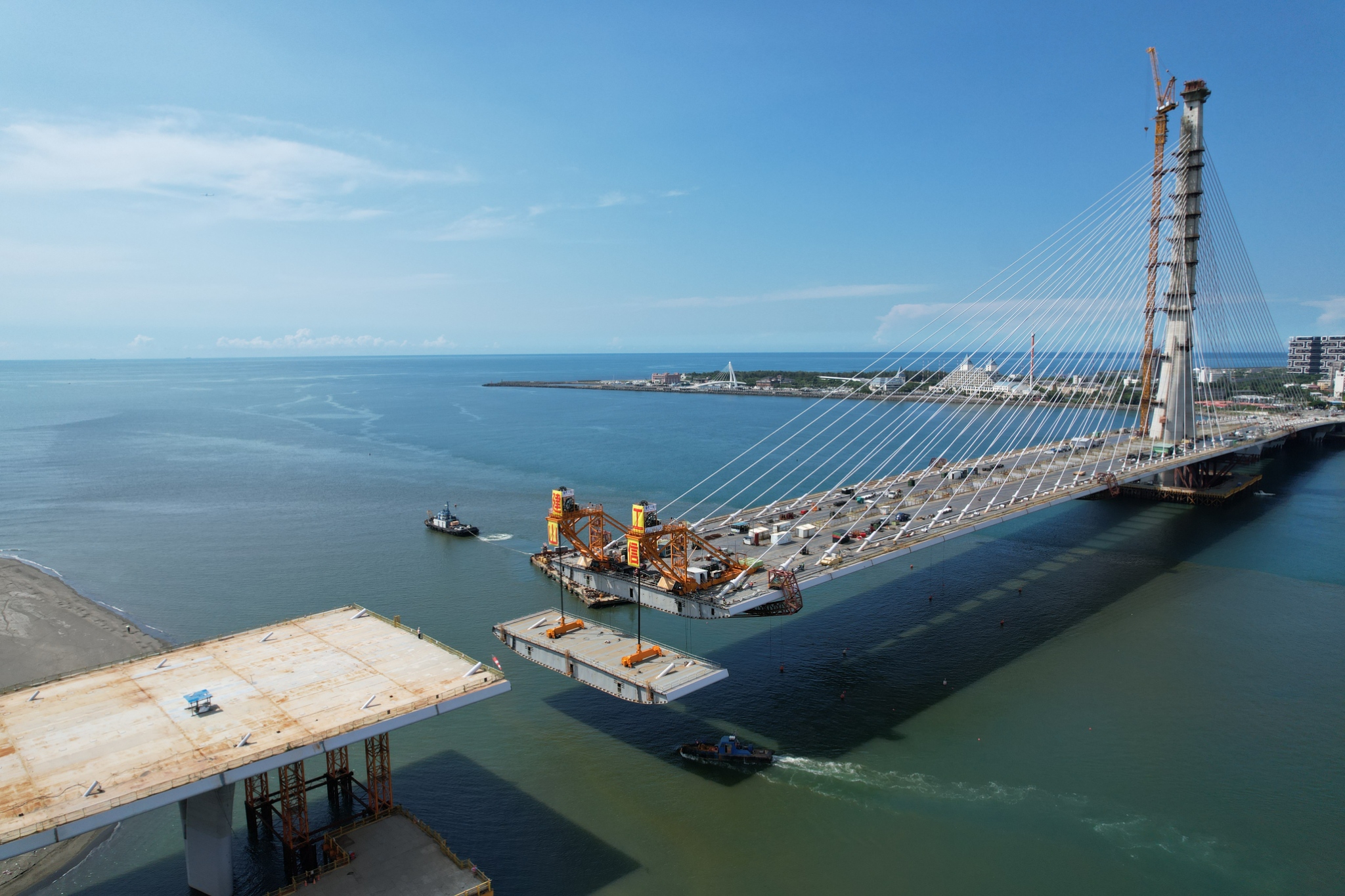 工程概述:全長2.035公里,包括(一)八里端引橋段,(二)淡江大橋主橋段,(三)淡水端引橋及匝道,主要工作項目如下:(1) 吊裝工法鋼箱形梁橋。(2) 場鑄逐跨工法預力箱形梁橋。(3) 場鑄工法預力箱形梁橋。(4) 場鑄預力板梁橋。(5) 主線及引道擋土牆。(6) 車行箱涵。(7) 交通、排水、監測系統及補充地質鑽探、照明、臨時設施、雜項、交通維持、安全衛生、環境設施、品質管制等附屬工程。
