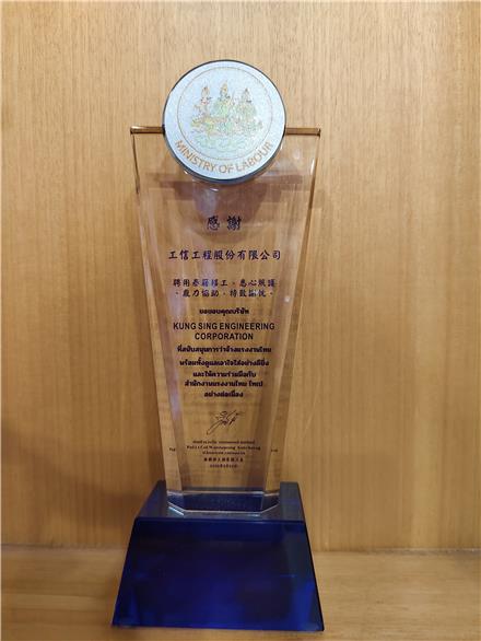 114年泰國勞工部頒發專業管理、細心照顧泰籍勞工感謝狀